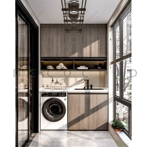 - بالکن سرپوشیده: با نصب کابینت آلومینیومی ضدآب و کفپوش تایل PVC، یک لاندری روم شیک داشته باشید